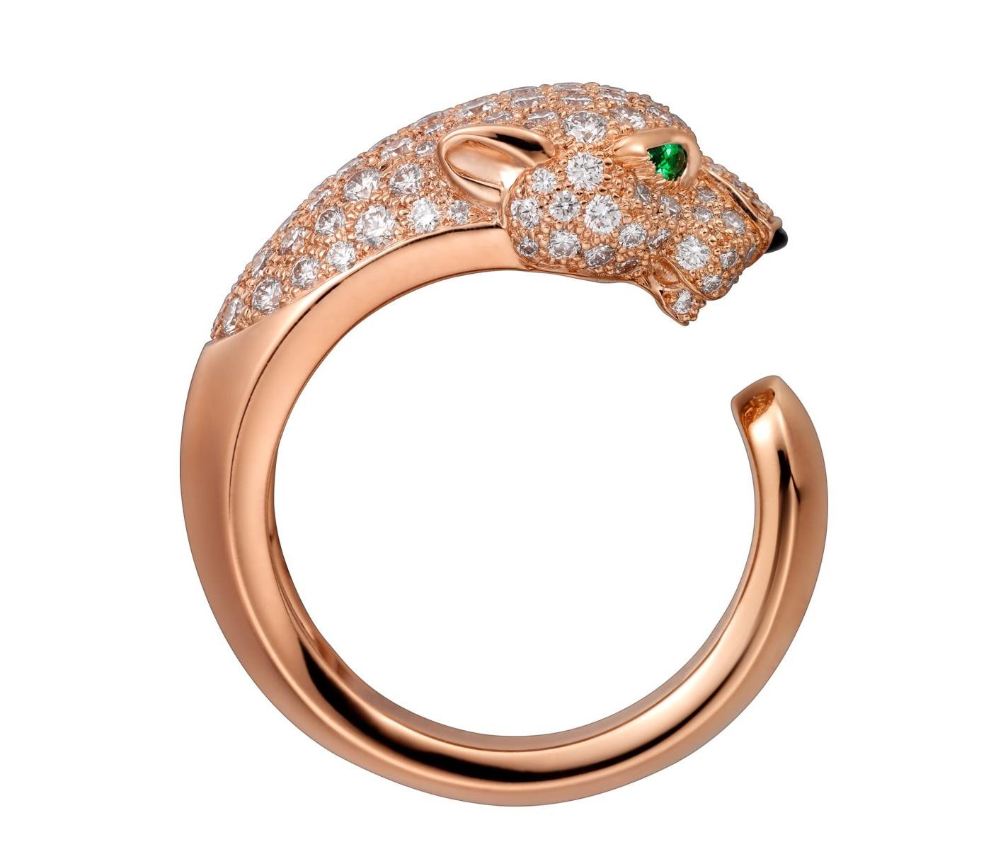 Ring, 18K pink gold, set with 137 brilliant-cut diamonds totaling 1.15 carats, emeralds, onyx by