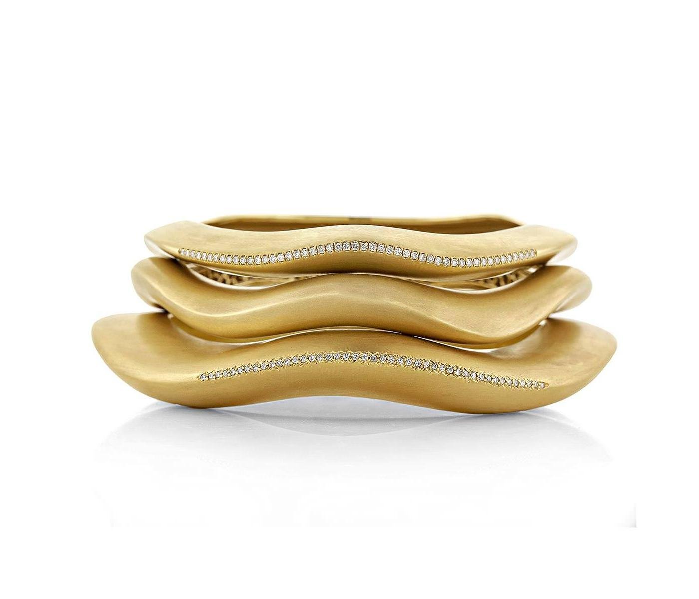 Bangles 18K Recycled Yellow Gold with white diamonds by Sandy Leong